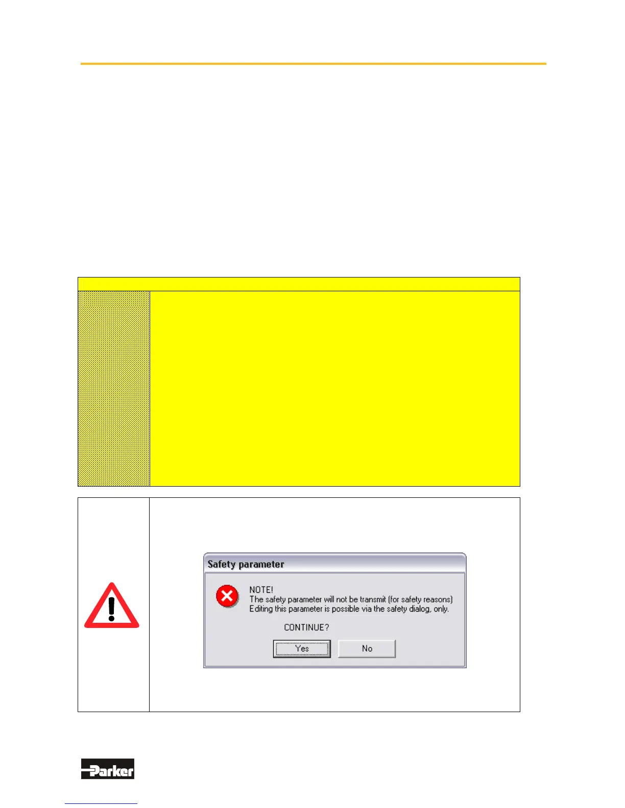 an open parameter file. The user has to transmit the parameter safely to the drive.