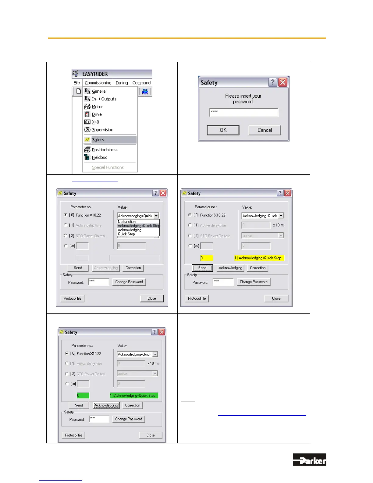● EASYRIDER Safety Parameter Data Entry Dialog Boxes