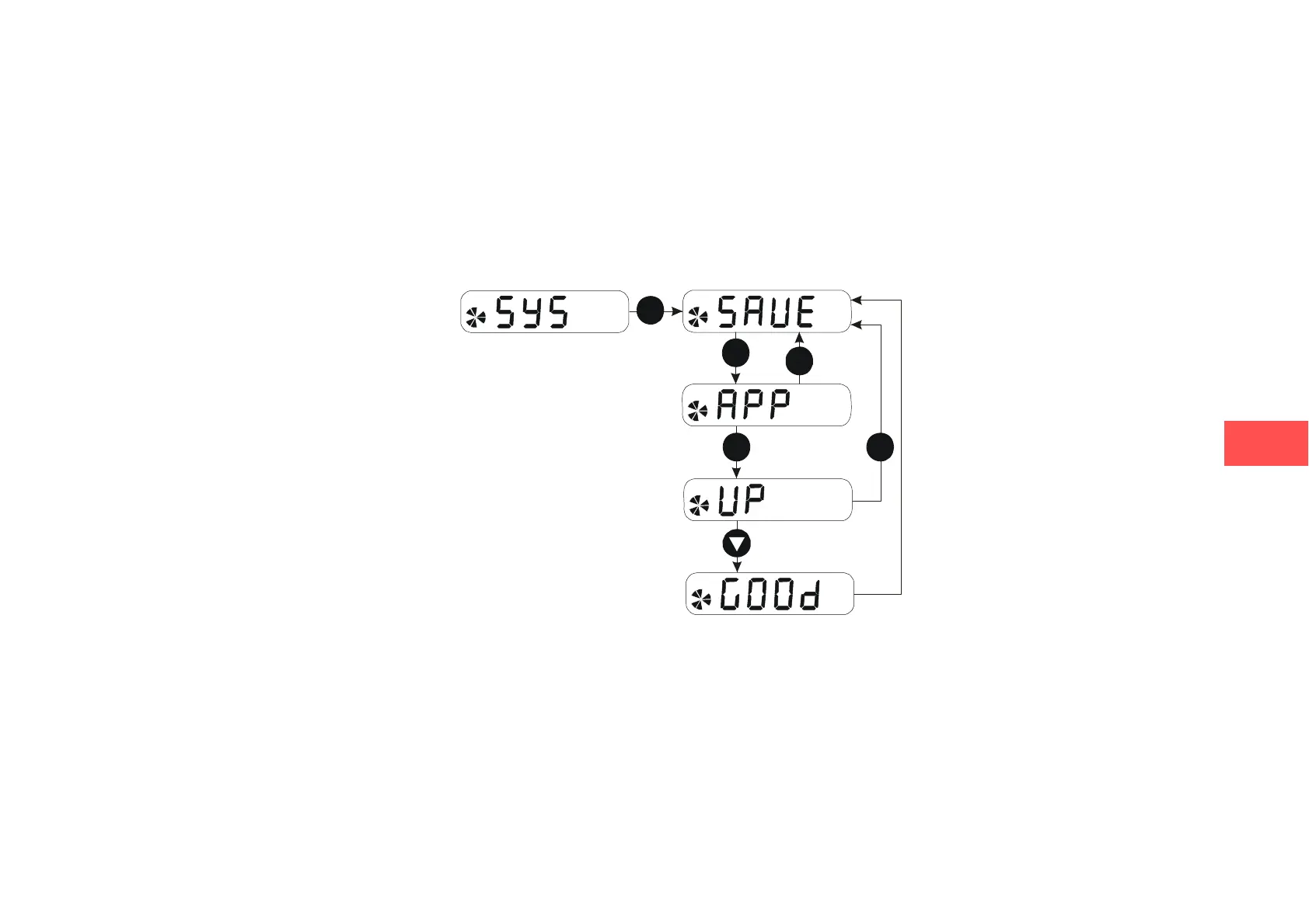 Press the UP key as instructed to save all parameters. Values are stored during power-down.