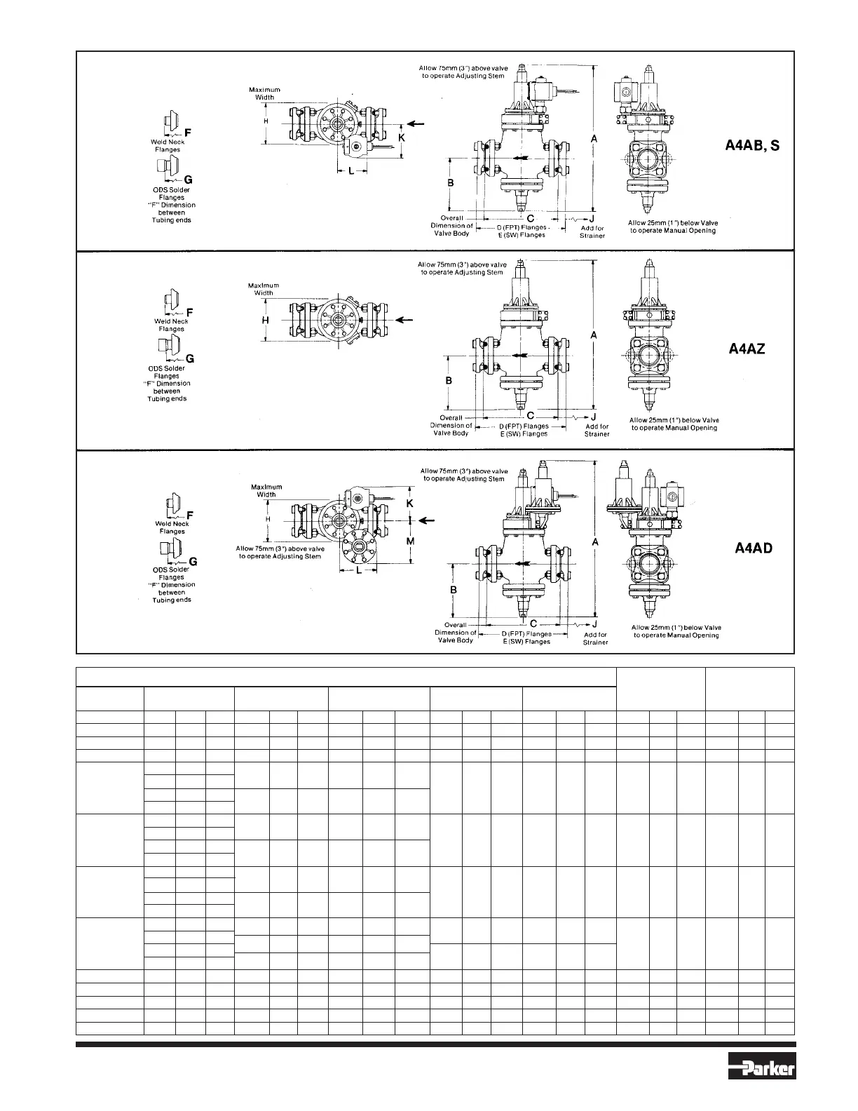 TABLE OF DIMENSIONS FOR INLET PRESSURE REGULATORS Types A4AS, A4AB, A4AD and A4AZ