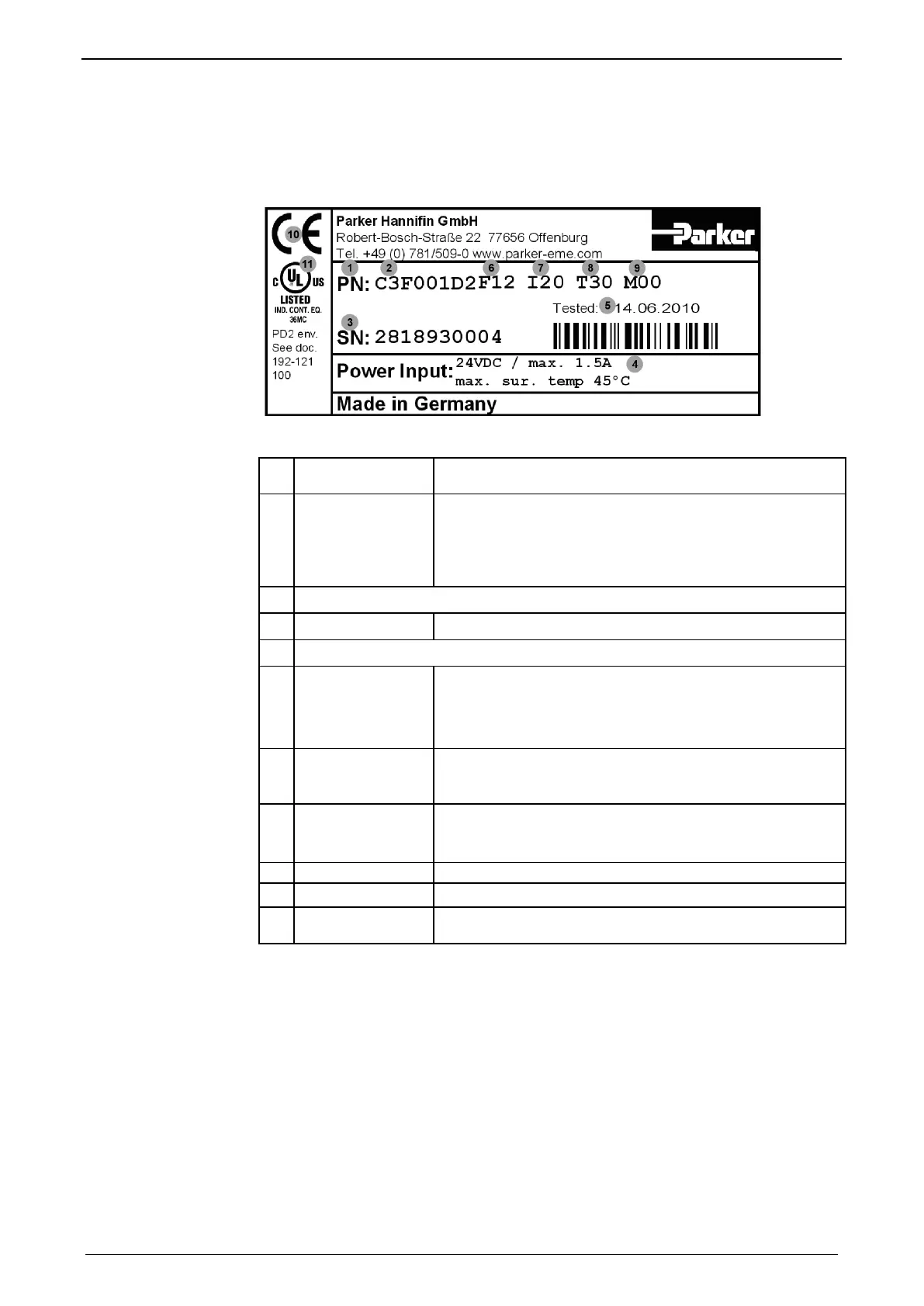 2.3 Type specification plate Compax3 Fluid
