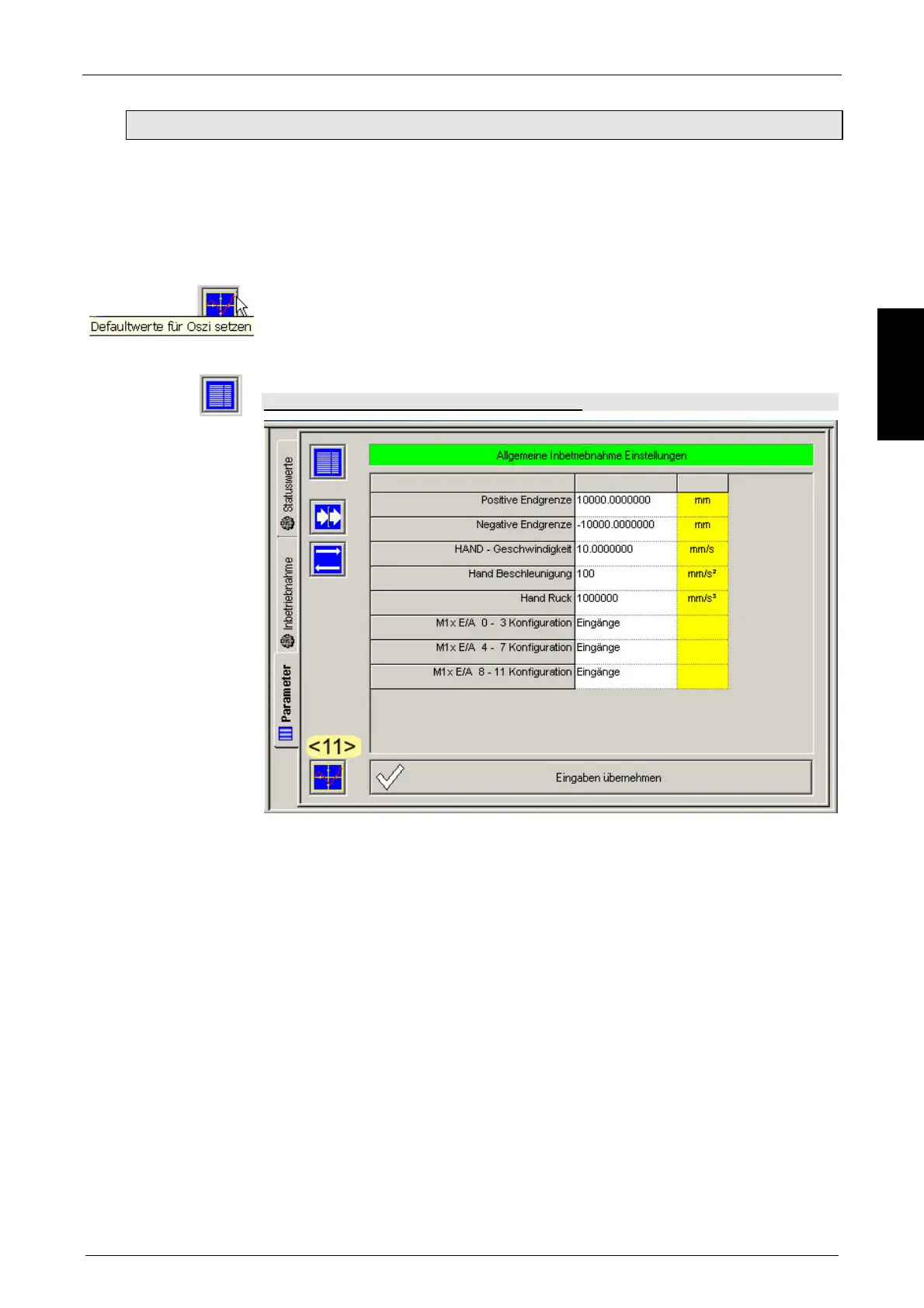 1.4.1.1 Testbewegungs - Parameter festlegen