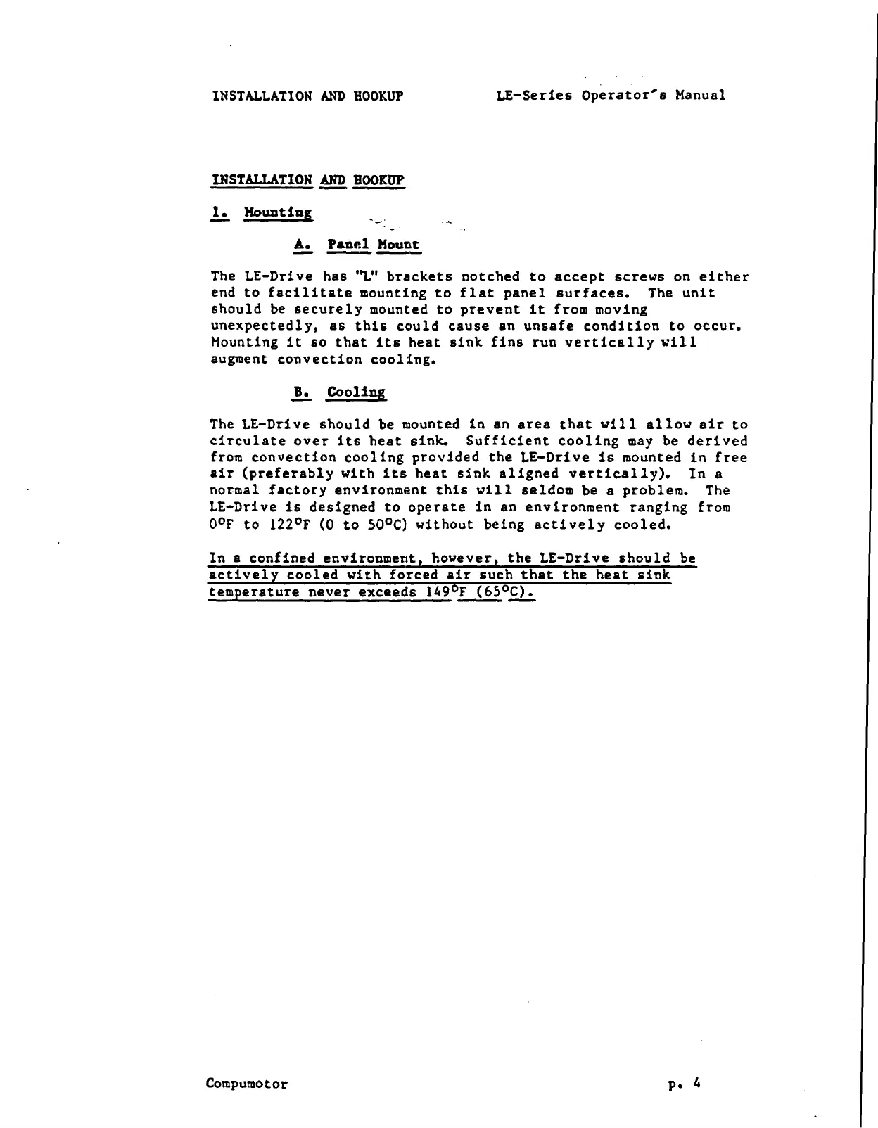 Parker Compumotor - Installation and Hookup; Mounting; Panel Mount