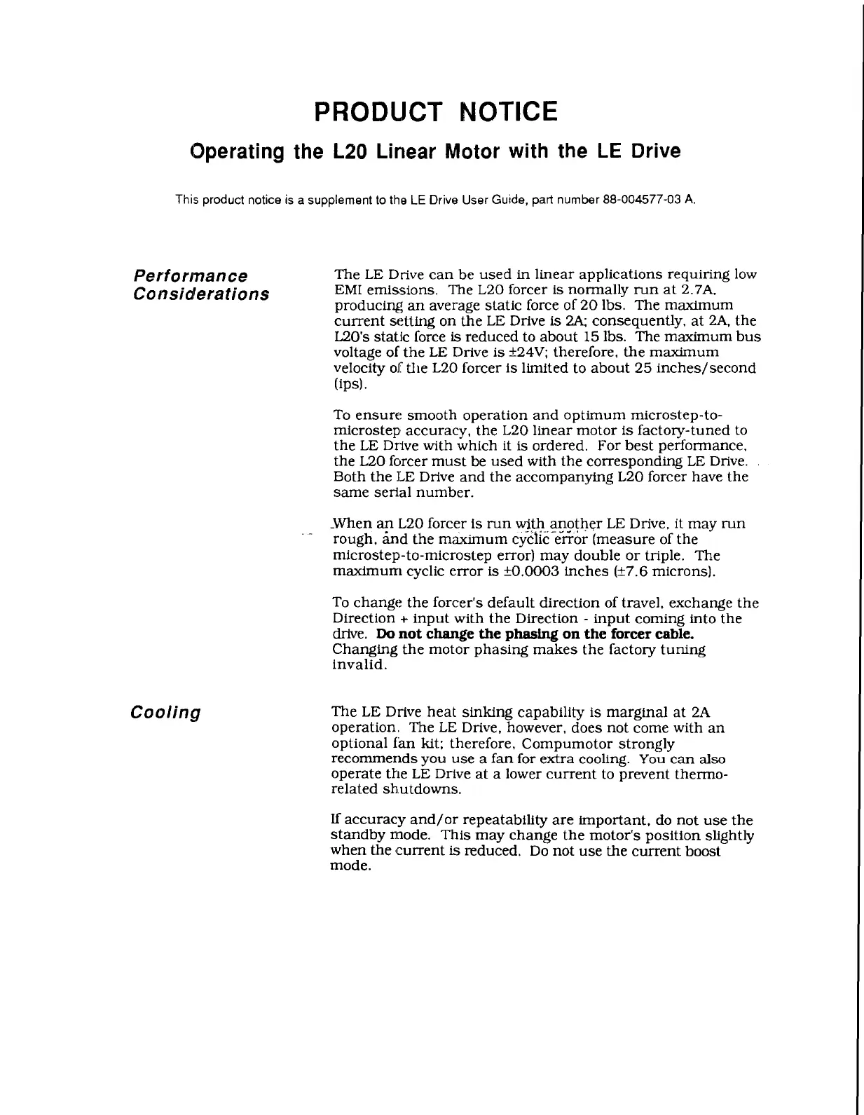 Operating the L20 Linear Motor with the