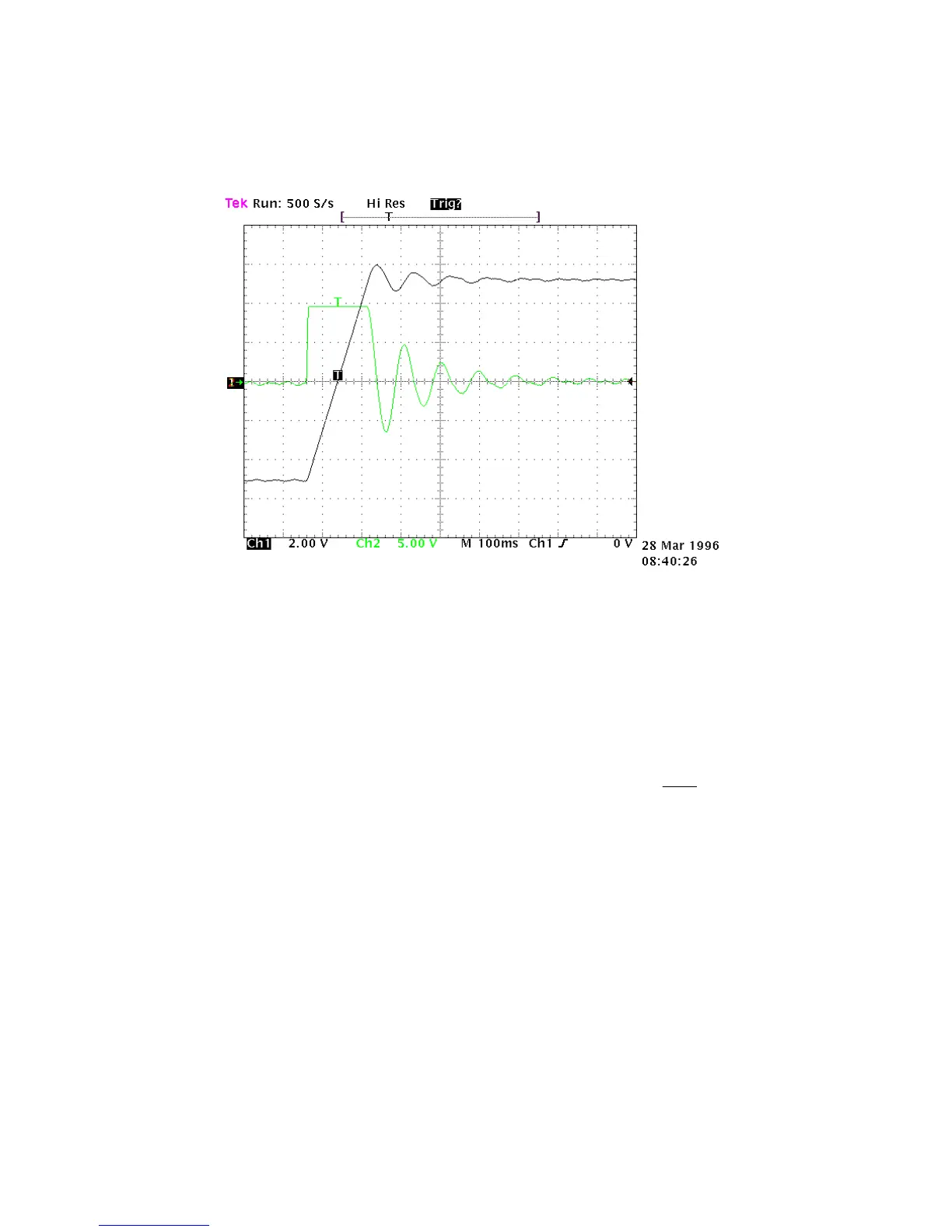 The graph shows system response to a square wave speed reference. Channel 1 (Ch1) is