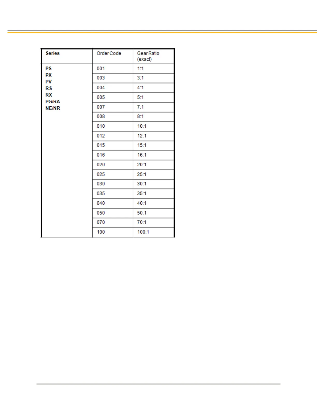 Parker Gearhead Gear Ratios
