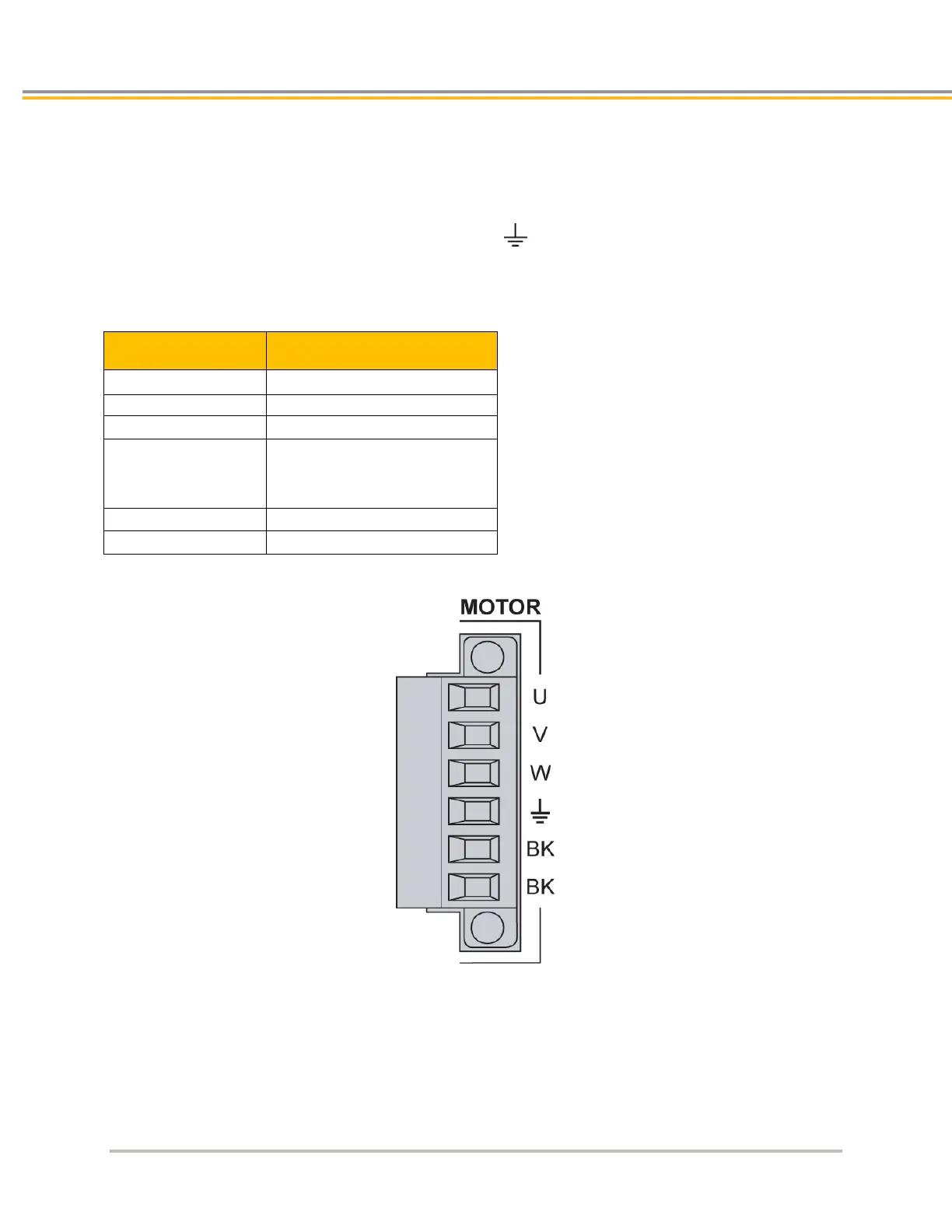 The drive’s Motor connector provides terminals U, V, W and for connecting output power to the motor. It