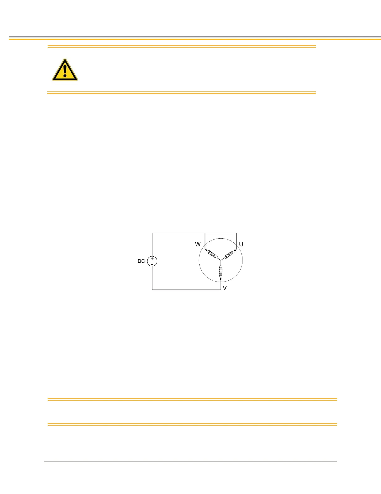 Connect motor input power wires U and V and slowly apply a positive voltage with respect to W. (See