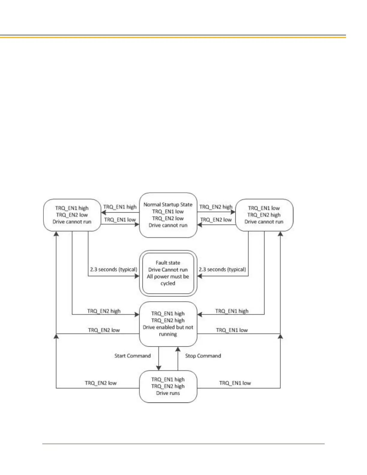 1. Both inputs are low. Hardware prevents the drive from starting. This is the torque disabled state
