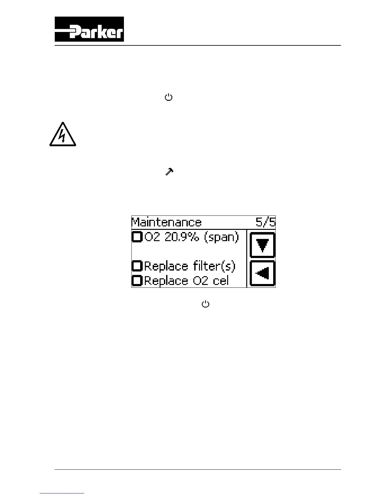 5. Go to screen 5/5 and touch O2 20.9% (span) button. The system will ask for