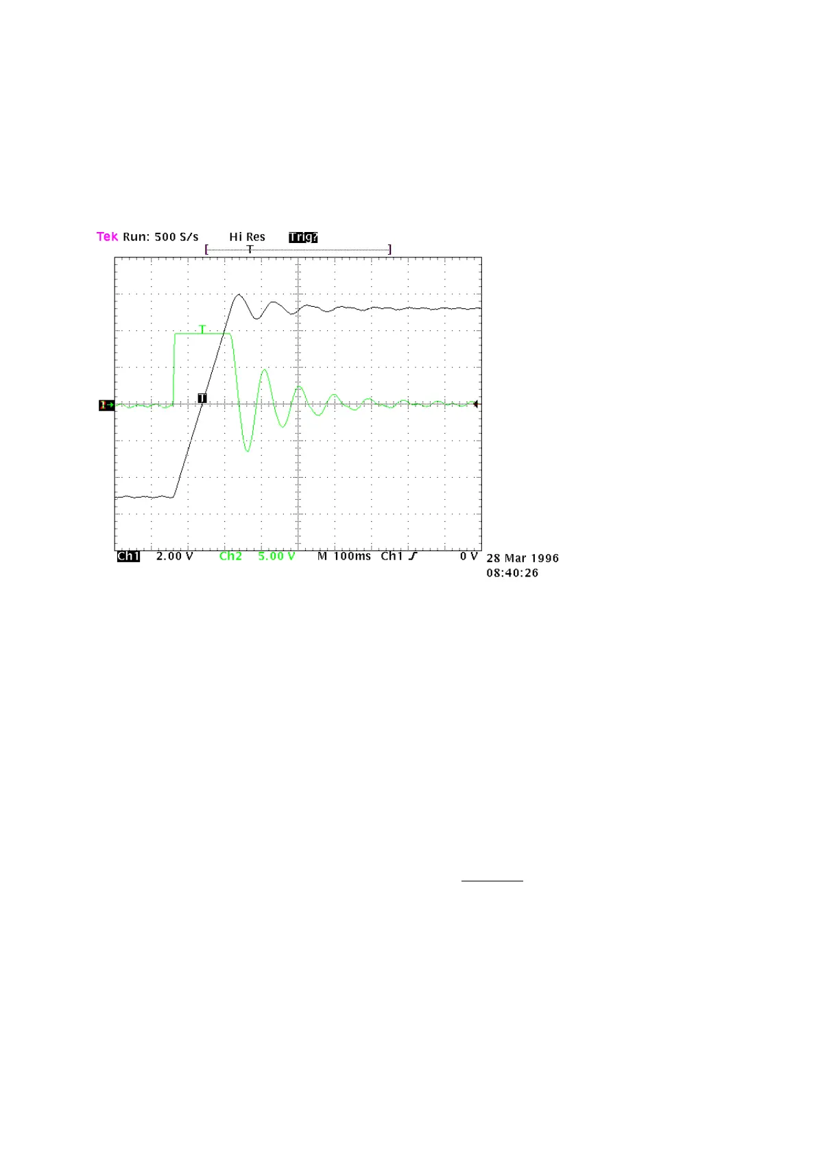 This diagram shows the response of the system to a square wave speed reference. Channel 1
