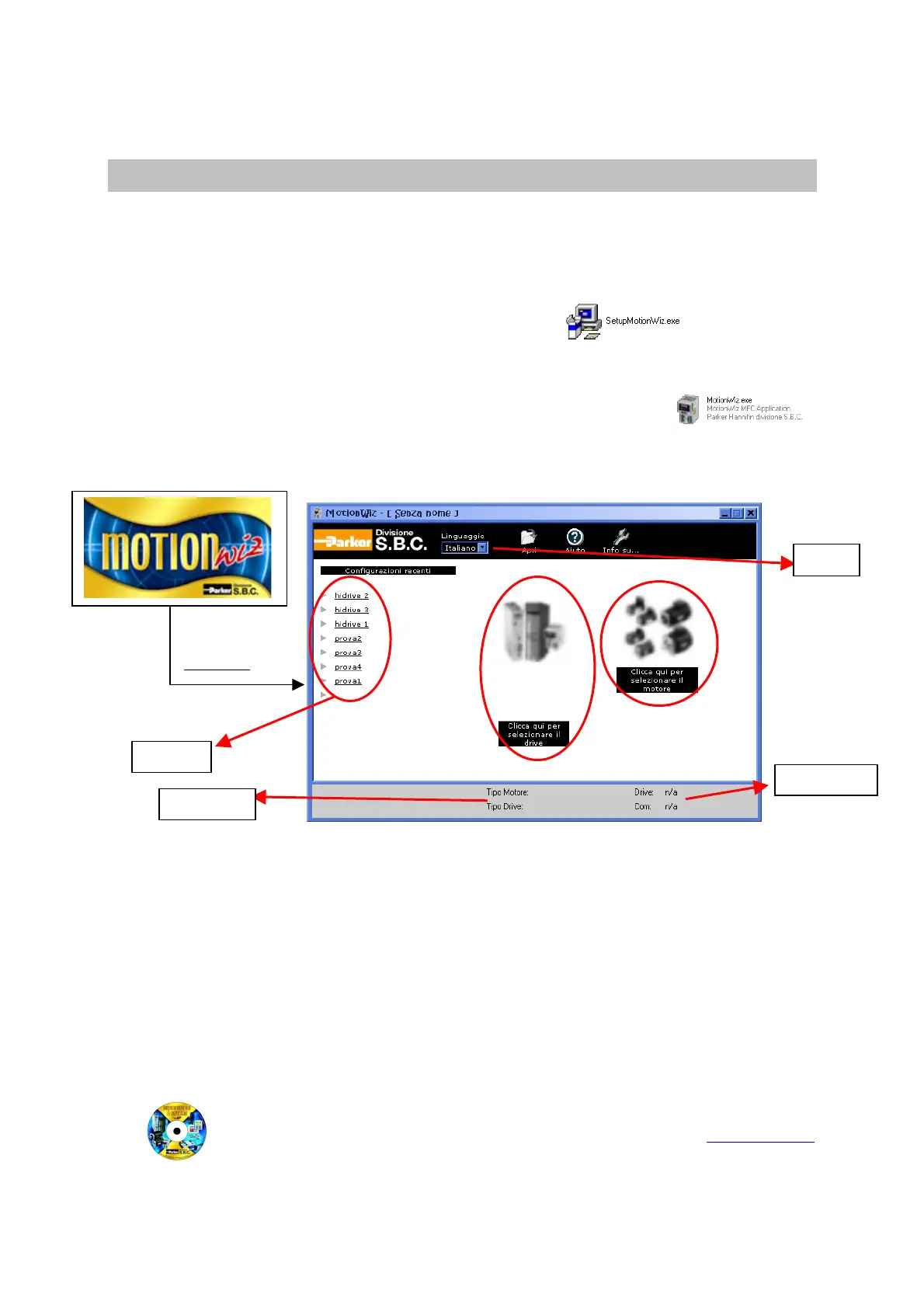 * The MotionWiz program can be found on the CD rom supplied with the drive or downloaded from our website: www.sbcelettronica.com