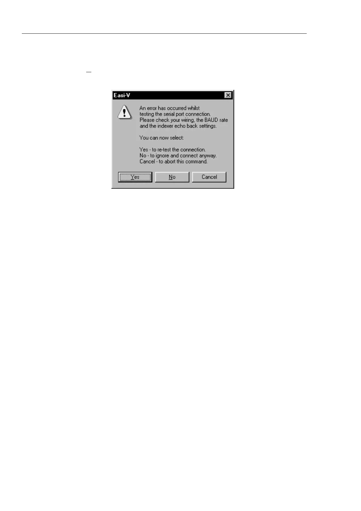the integrity of the overall RS232 link. If this does not happen, check the RS232 lead