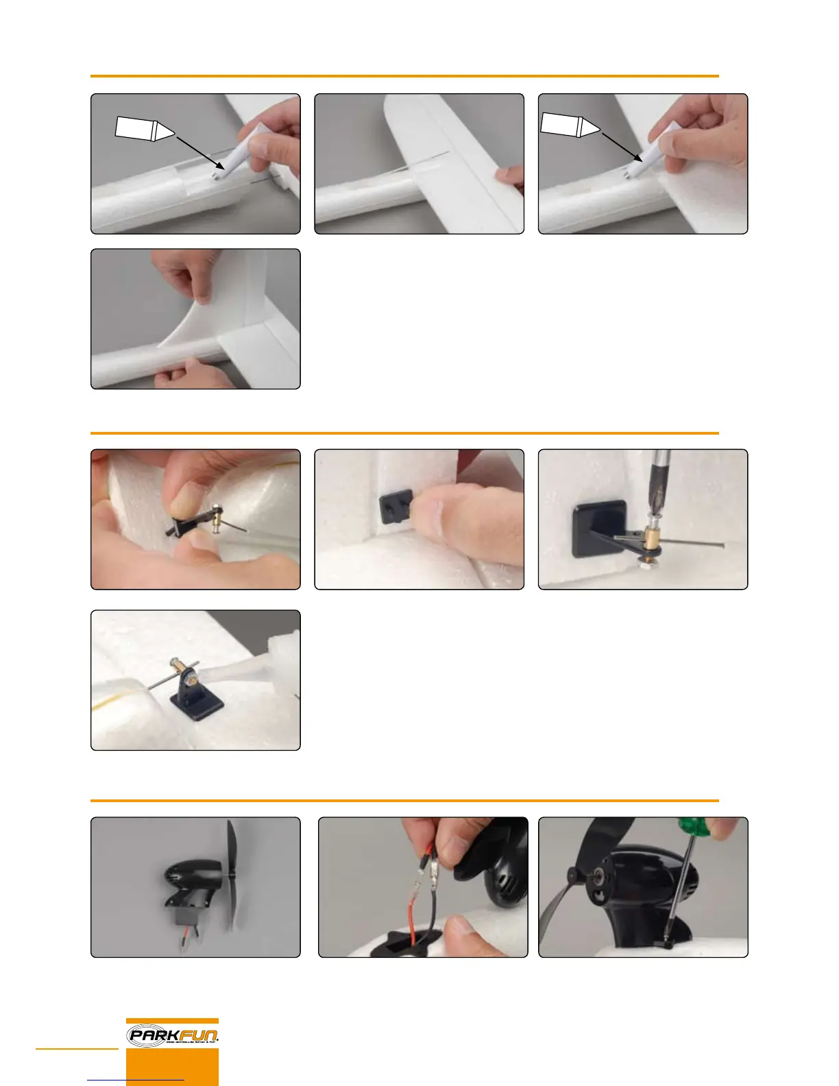 • Fix the control horns to the vertical n and to the stabilizer and