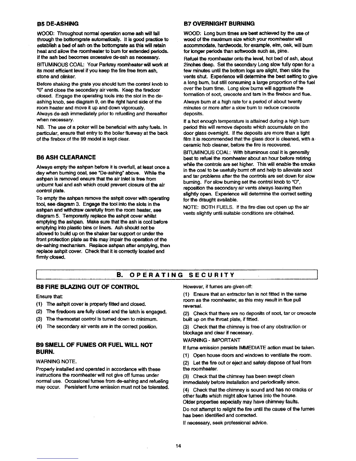 Parkray Chiltern - B5 De-ashing; B6 Ash Clearance; B7 Overnight Burning; B8 Fire Blazing Out of Control
