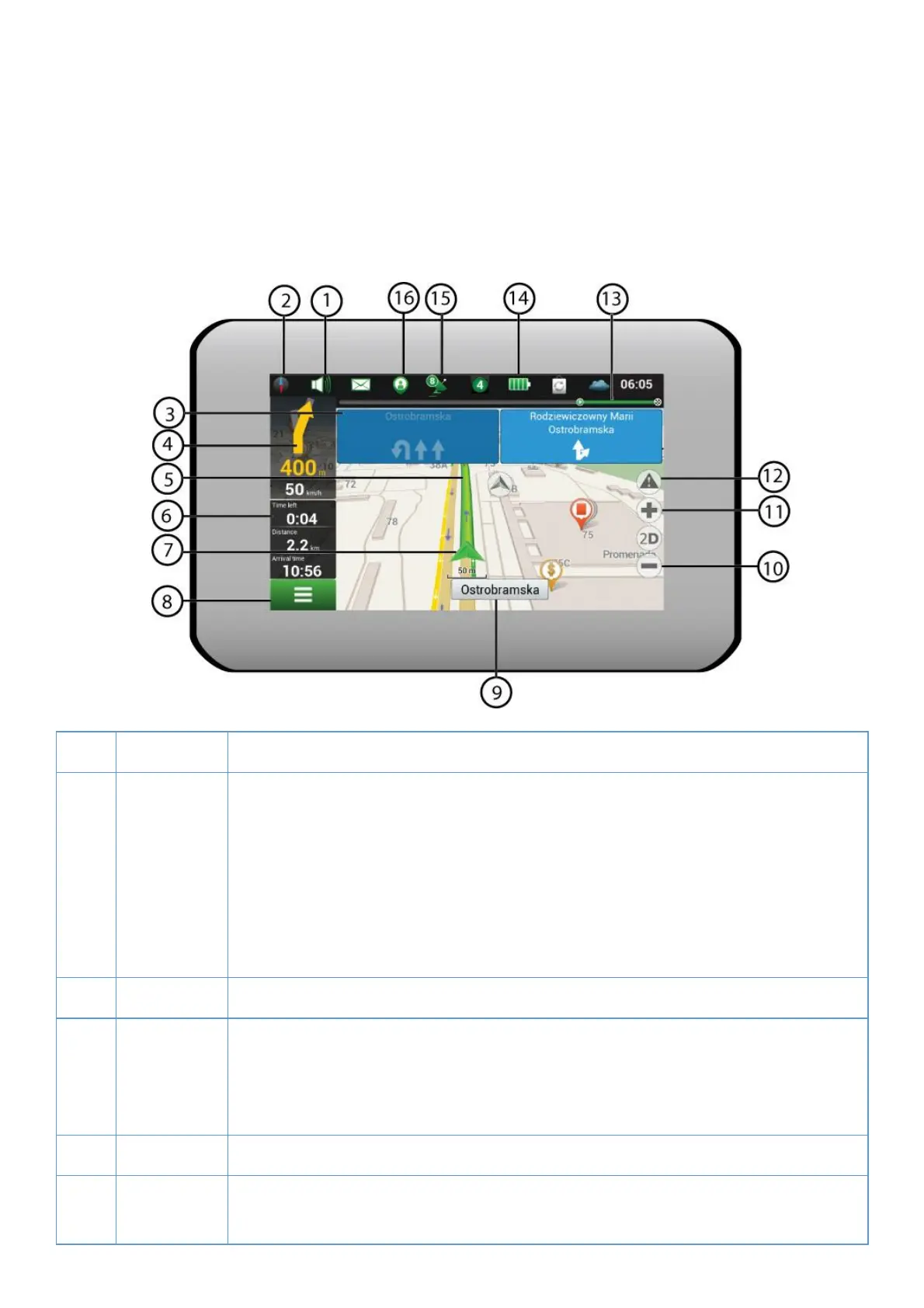 the manoeuvre. Tapping on the sign opens the menu containing route opoons, for