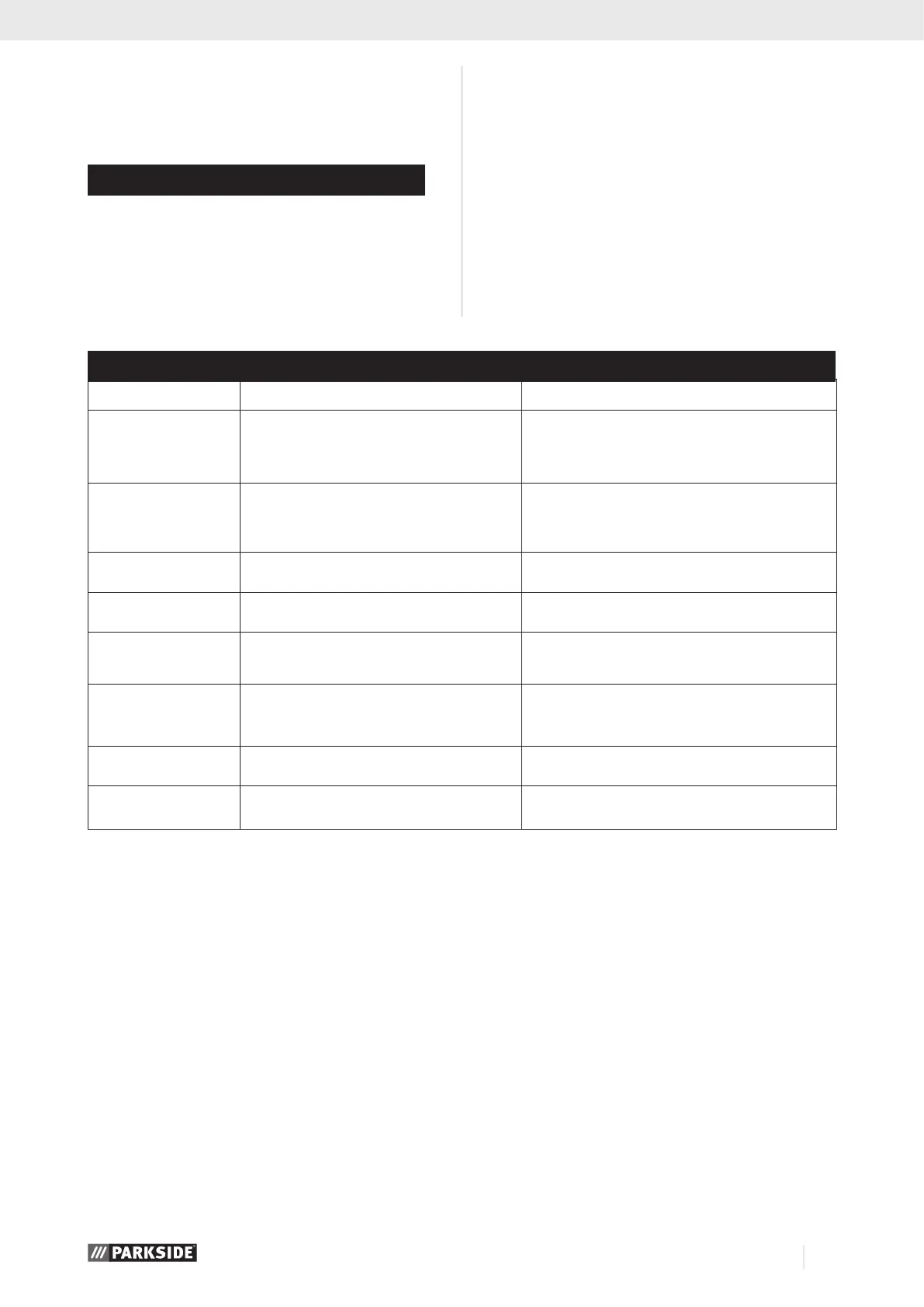 Fault Possible cause Remedy