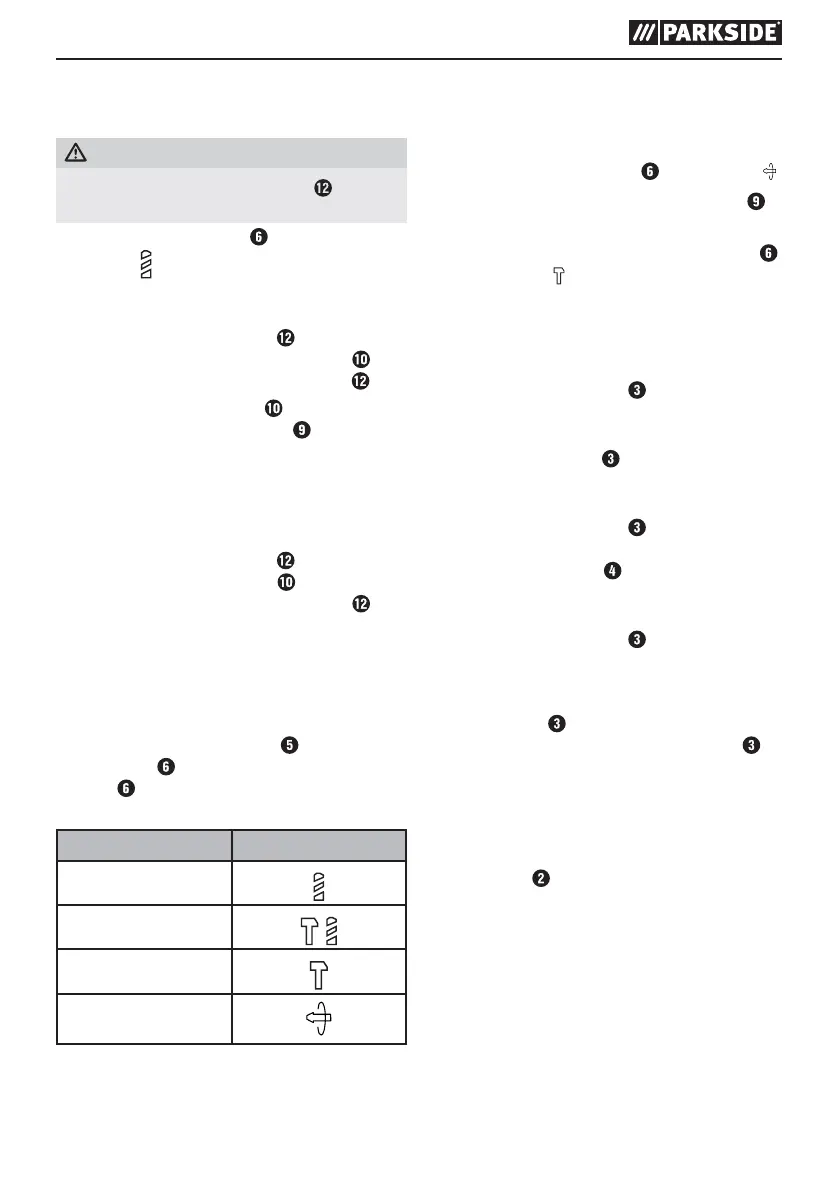♦ Draai voor het beitelen de functiekeuzeknop