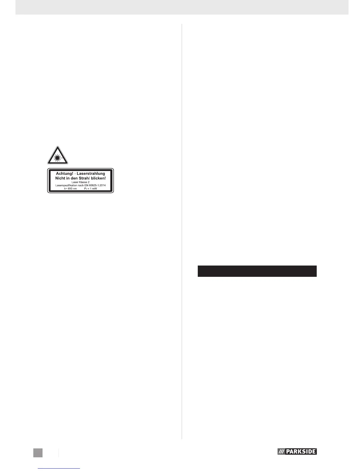 ne površine, osebe ali živali. Tudi laserski žarek