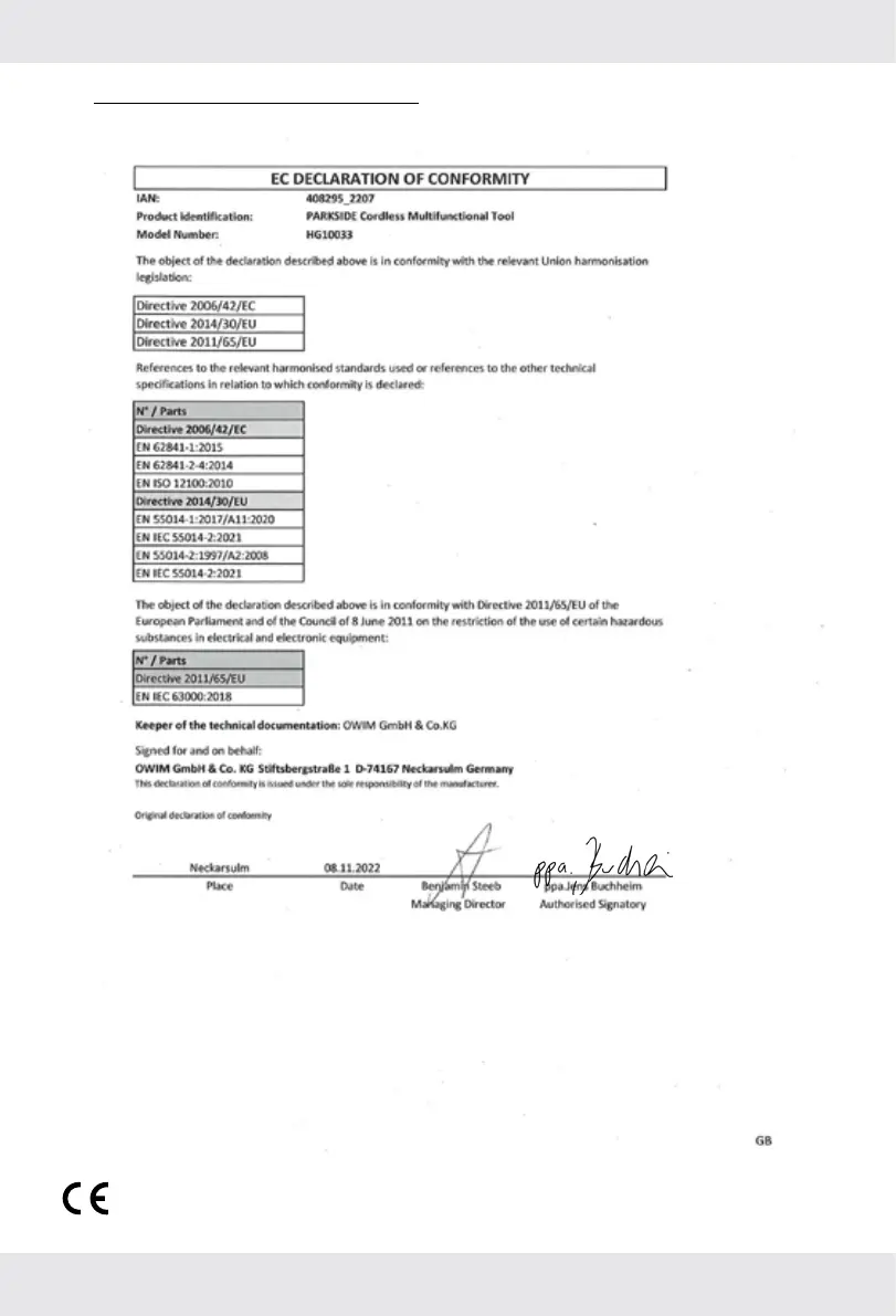 Parkside PAMFW 12 E4 - EC Declaration of Conformity