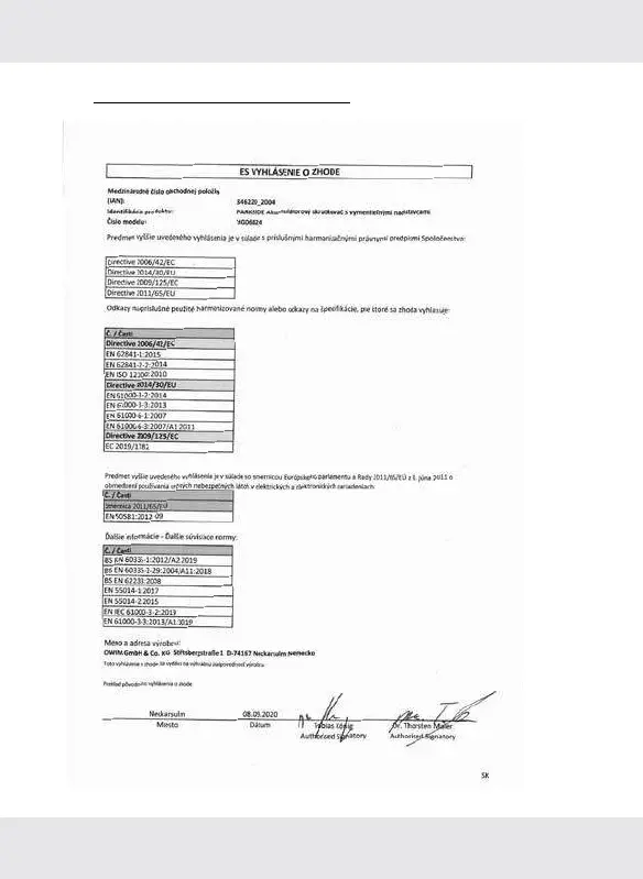 Parkside PAS D5 - Vyhlásenie O Zhode
