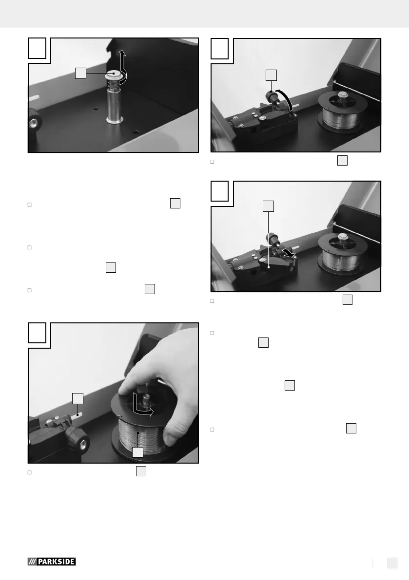 Setzen Sie die Drahtrolle auf die Welle. Achten