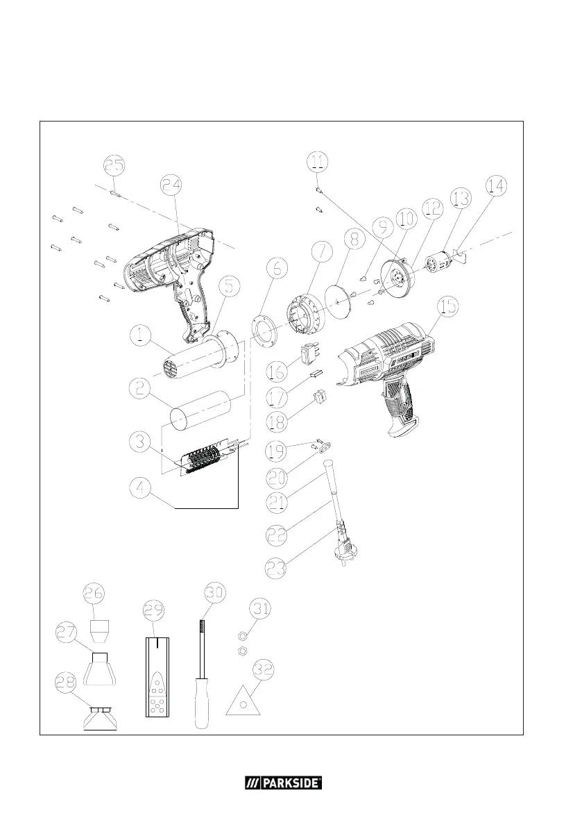 Parkside PHLG 2000 E4 - Exploded Drawing; Explosionszeichnung; Plano de Explosión; Vista en Corte