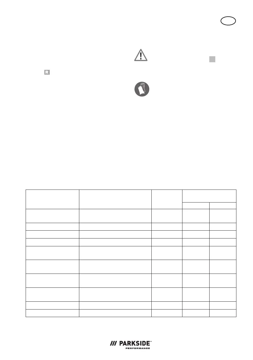 de mantenimiento indicados en la tabla
