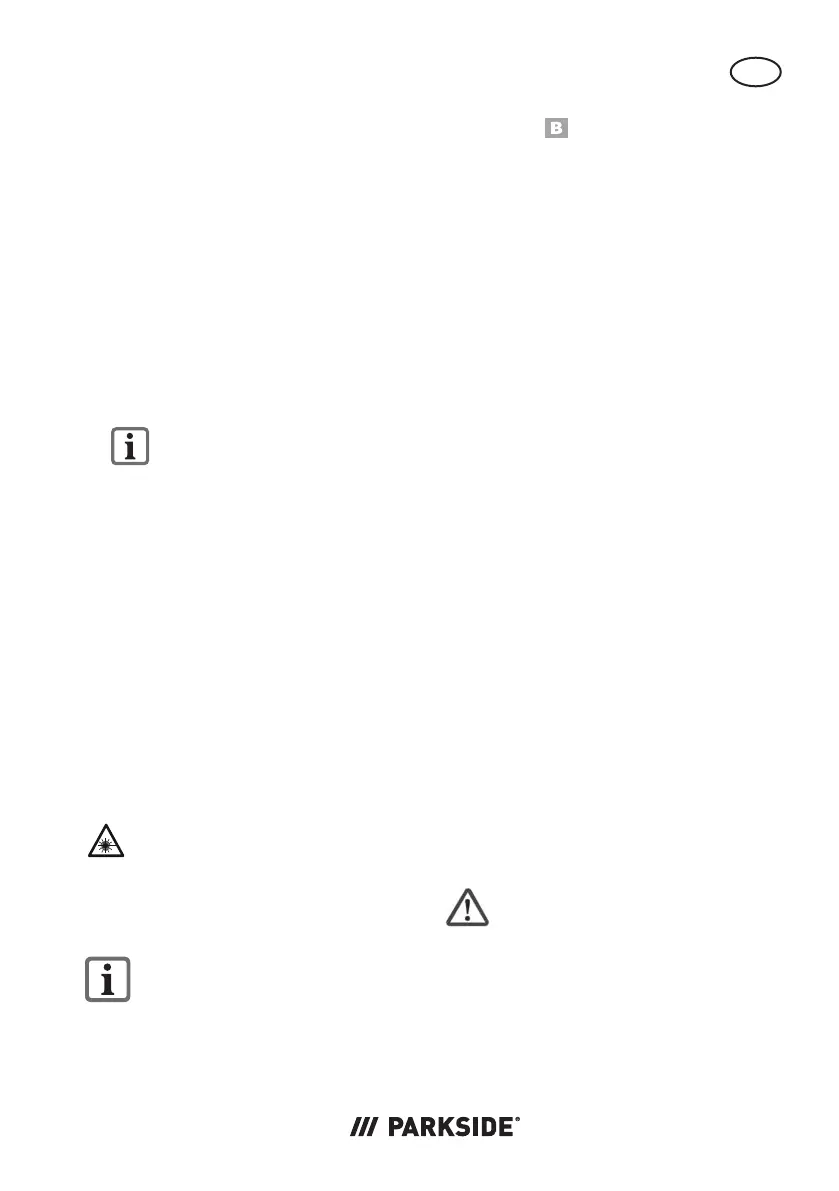 2. Zapnite laser na spínači zap/vyp (13).