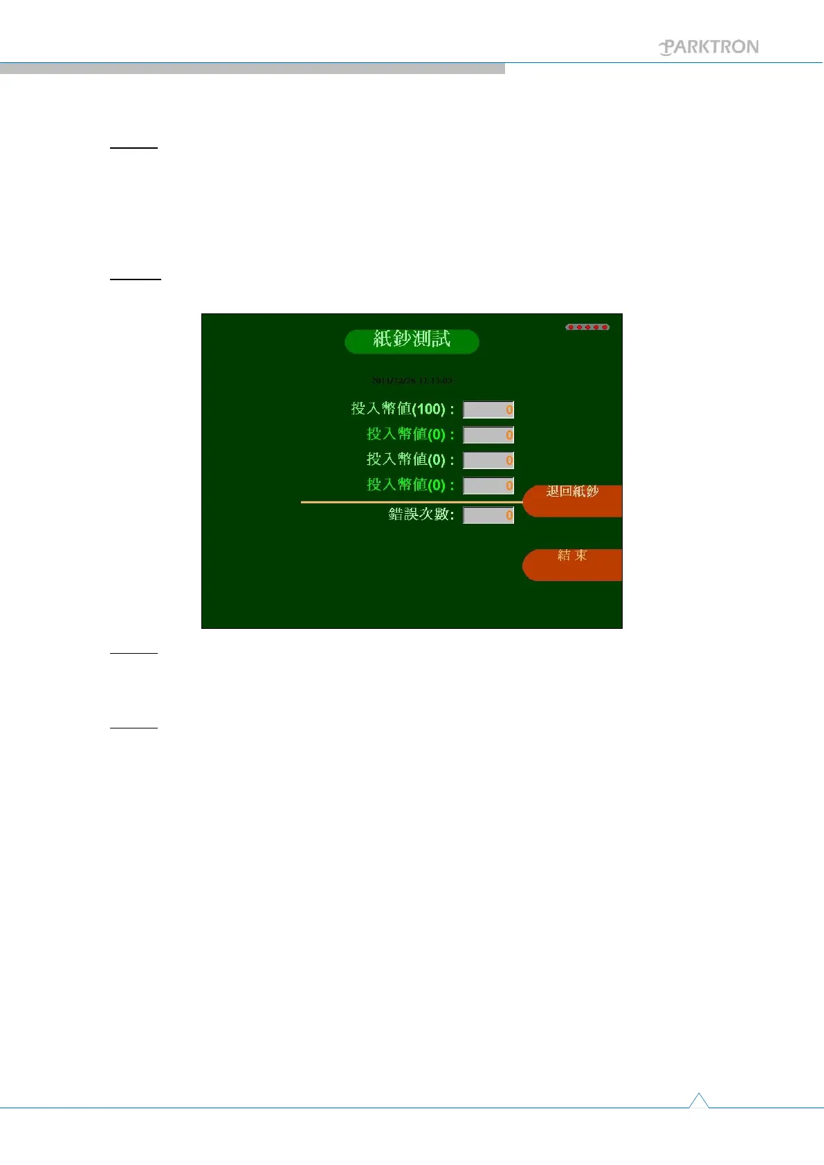 Step 1: Push the [Bill Test] button in Maintenance page (2) to enter the testing page as