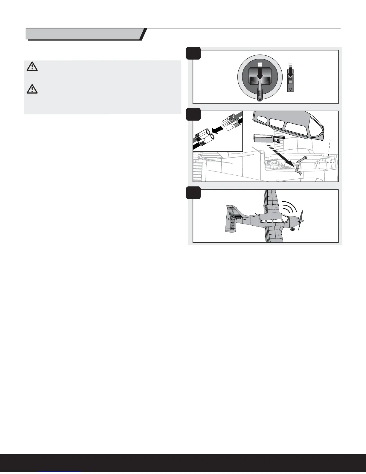 subsequent connection of a fl ight battery requires the steps below.