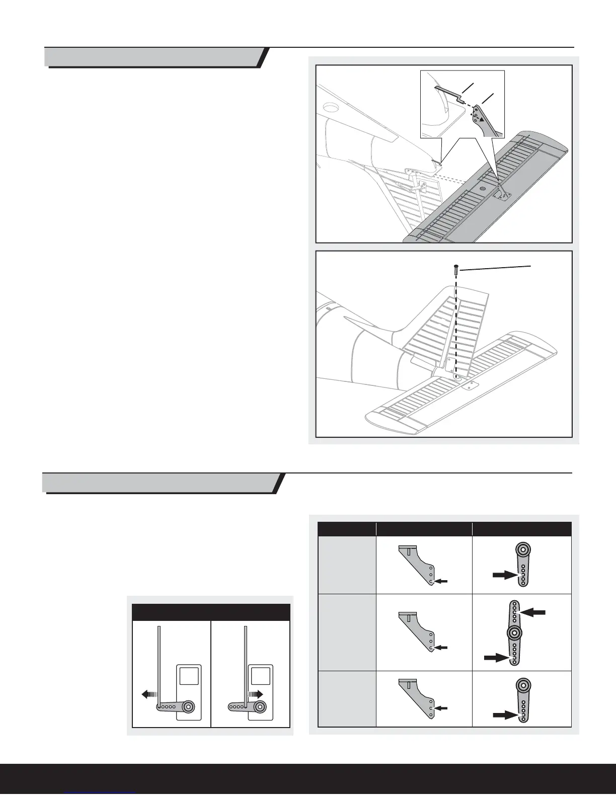 fl y the model with more or less control throw, adjust the position of the linkages