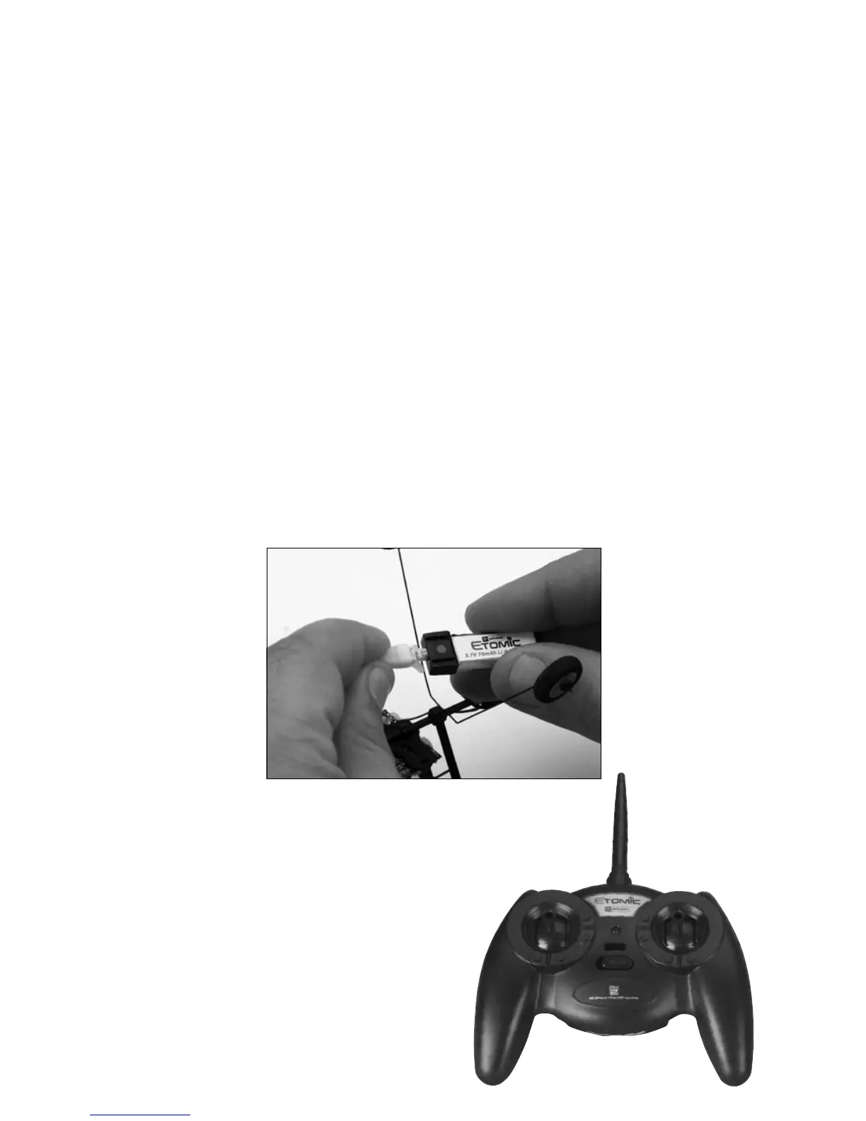 3. Plug the ight battery into the white lead in the fuselage. This must