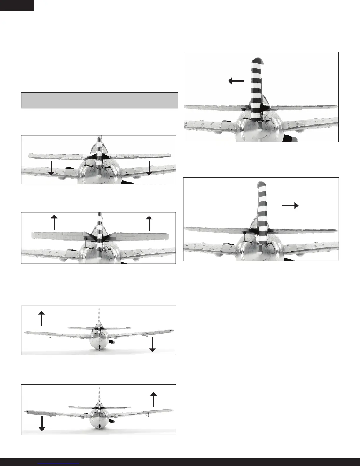 Move the transmitter controls to make sure aircraft control sur-