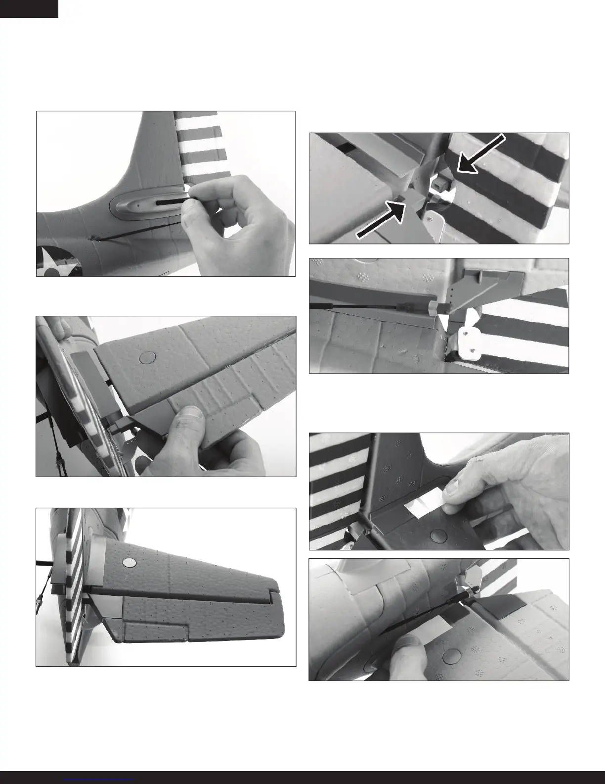 Montieren Sie das linke Höhenruder auf gleichem Weg. Das