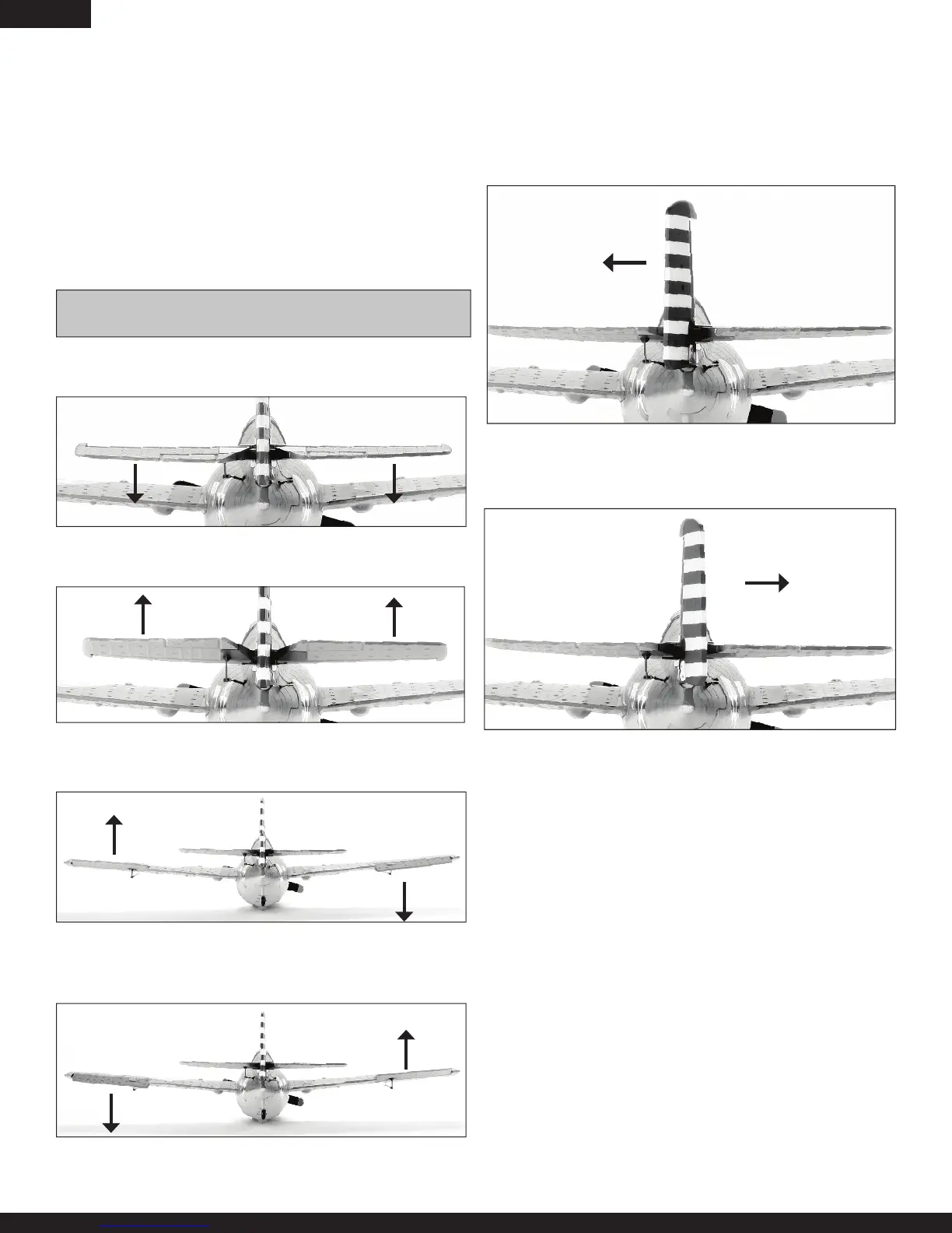 4. Lorsque vous poussez le manche d’aileron de l’émetteur vers