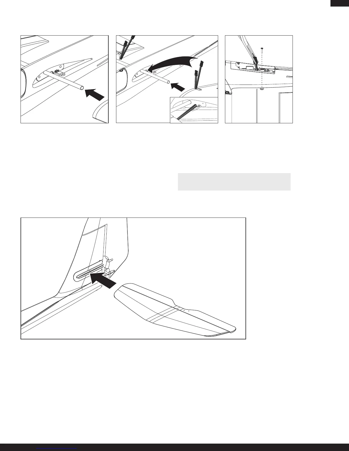 1. Install horizontal tail from the left side of the fuselage through the hole in