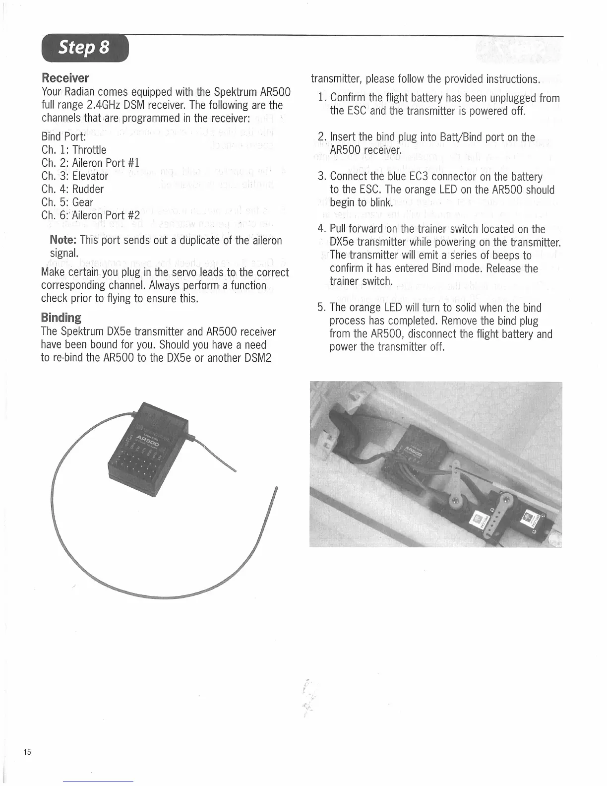 PARKZONE Radian - Receiver and Binding; Receiver Channel Assignments