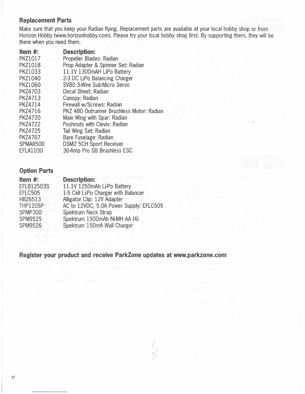 PARKZONE Radian - Flying the Radian; Pre-Flight Checks; Center of Gravity (CG)