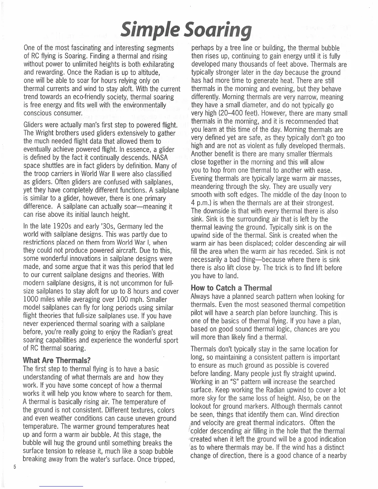 PARKZONE Radian - Simple Soaring Guide; Understanding Thermals; Locating Thermals