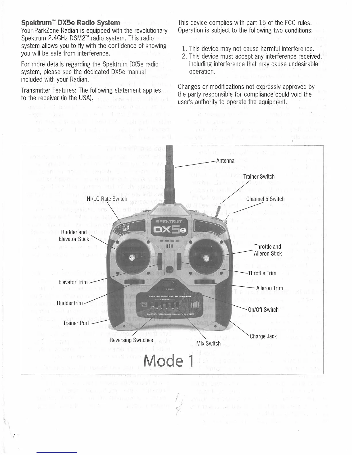 PARKZONE Radian - Spektrum DX5 e Radio System