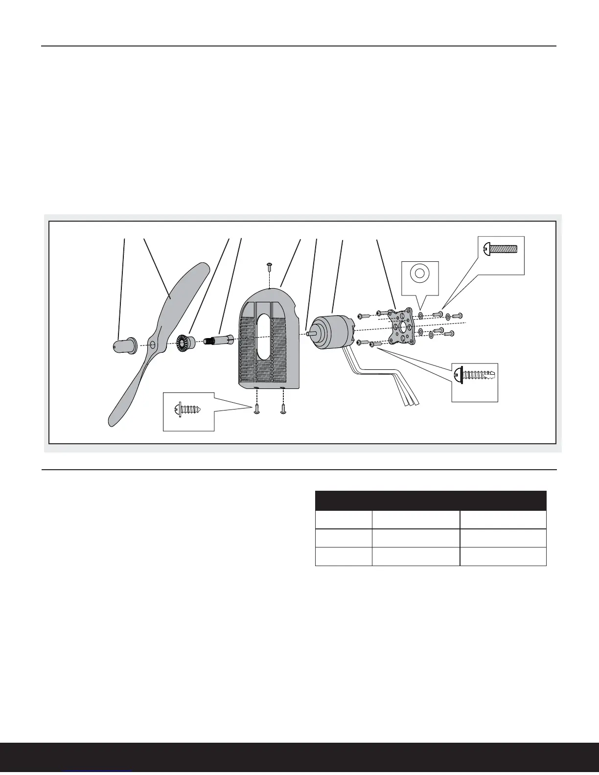 5. Attach collet, backplate and propeller to motor shaft using spinner nut. The