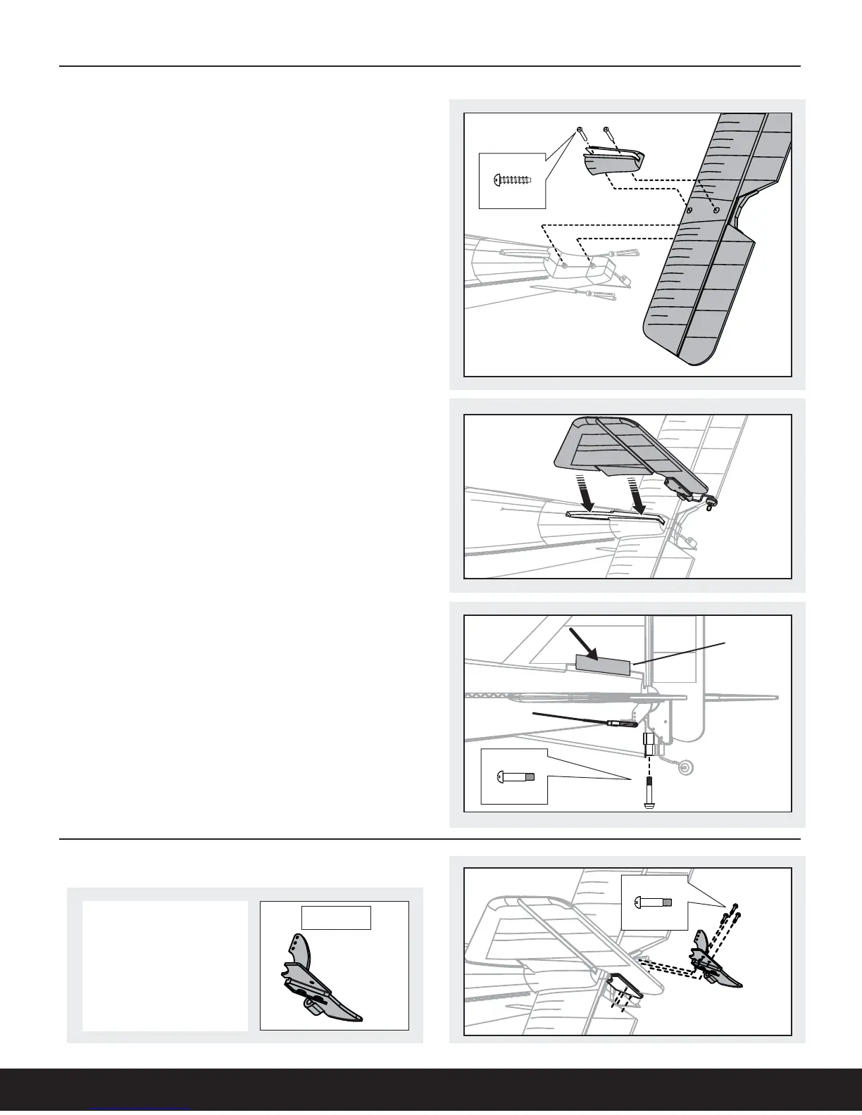 1. Attach the horizontal tail and vertical fi n mount to the fuselage using two