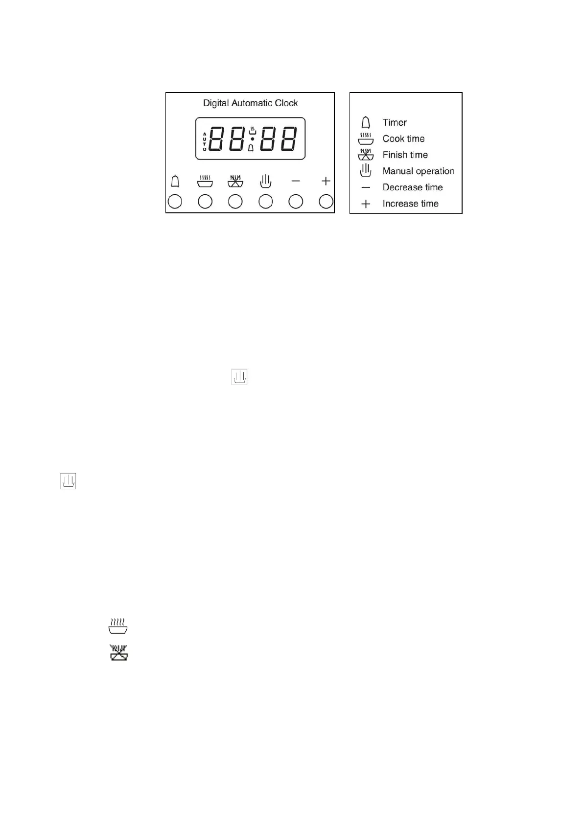 2. Press button, set cooking finish time with + and – buttons.