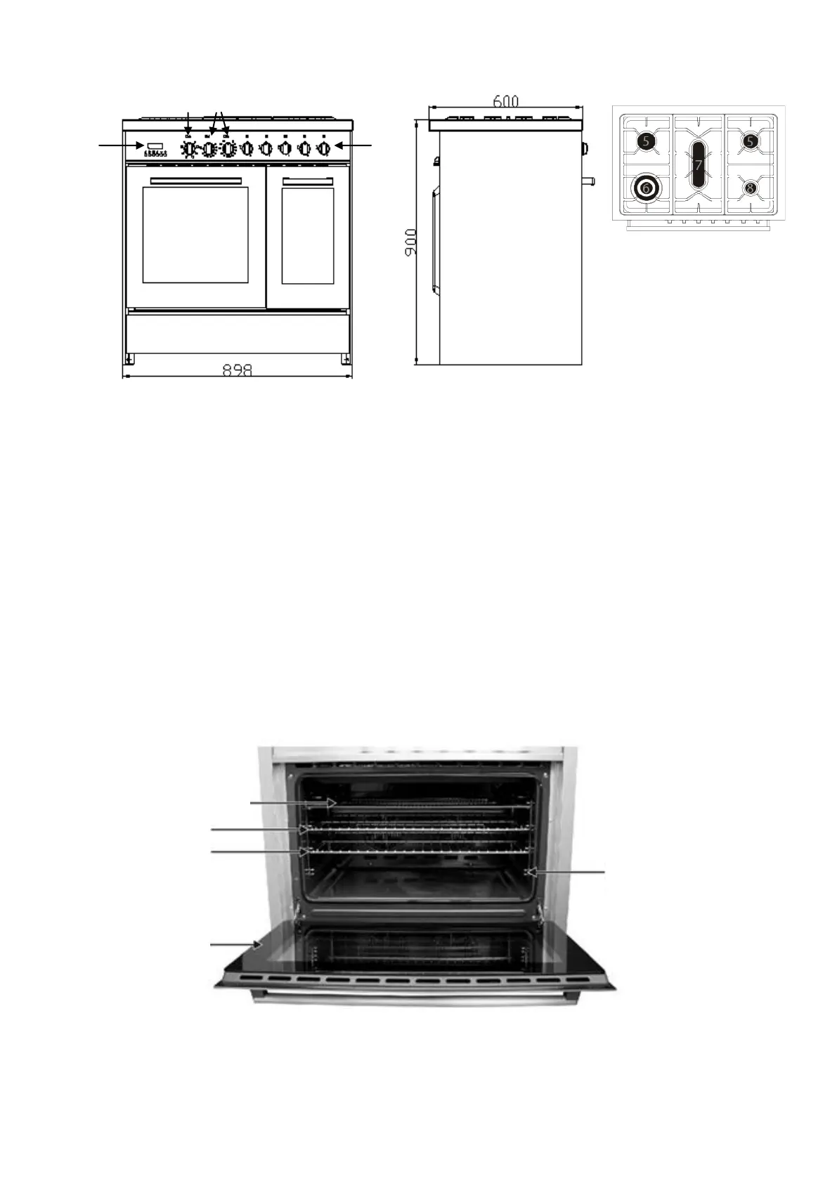 5. Semi-rapid burner (medium) 12. Oval cooktop element
