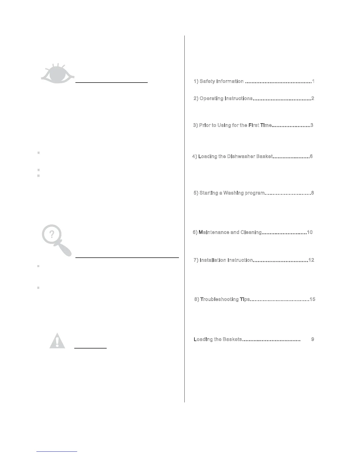 Caring for the Dishwasher..................... .........11.