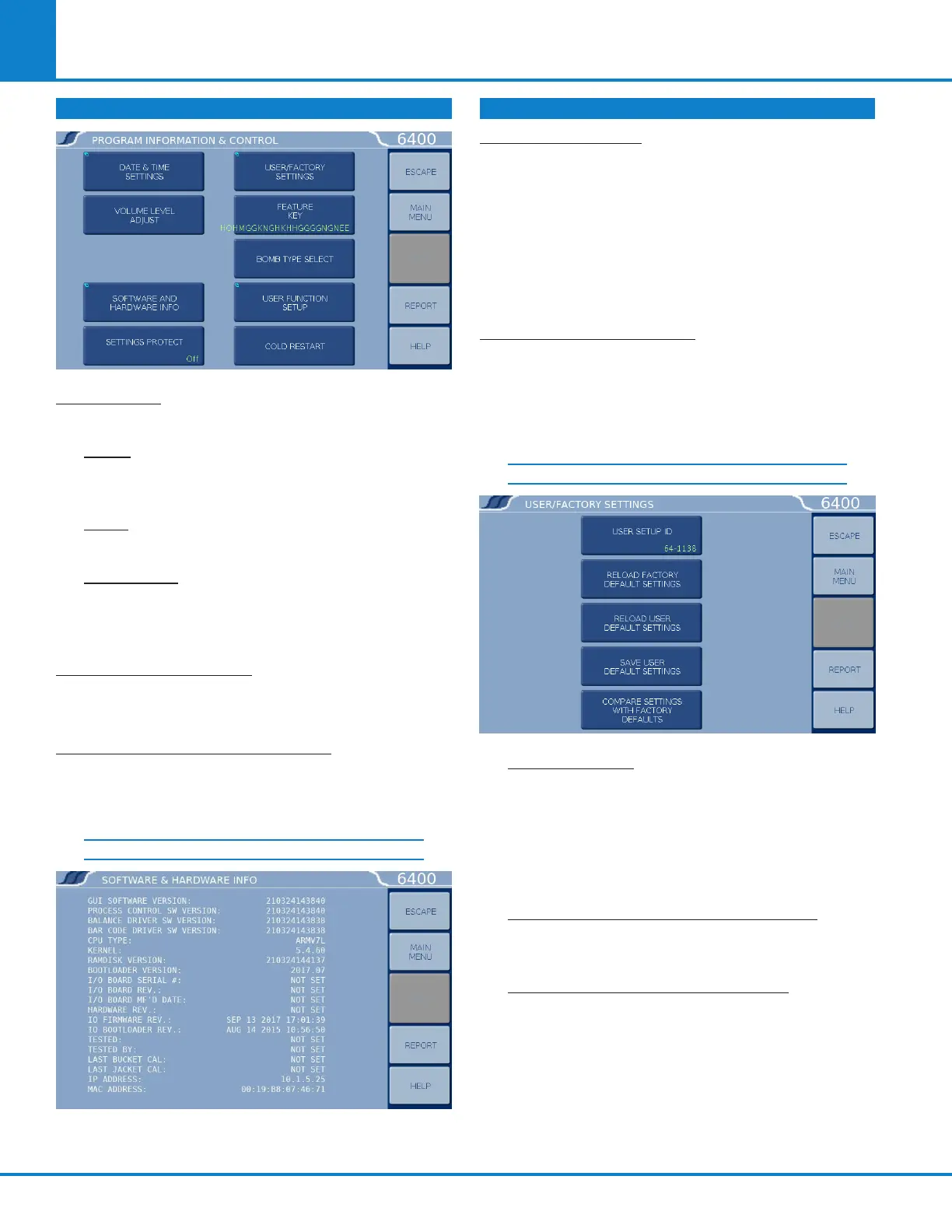 USER/FACTORY SETTINGS