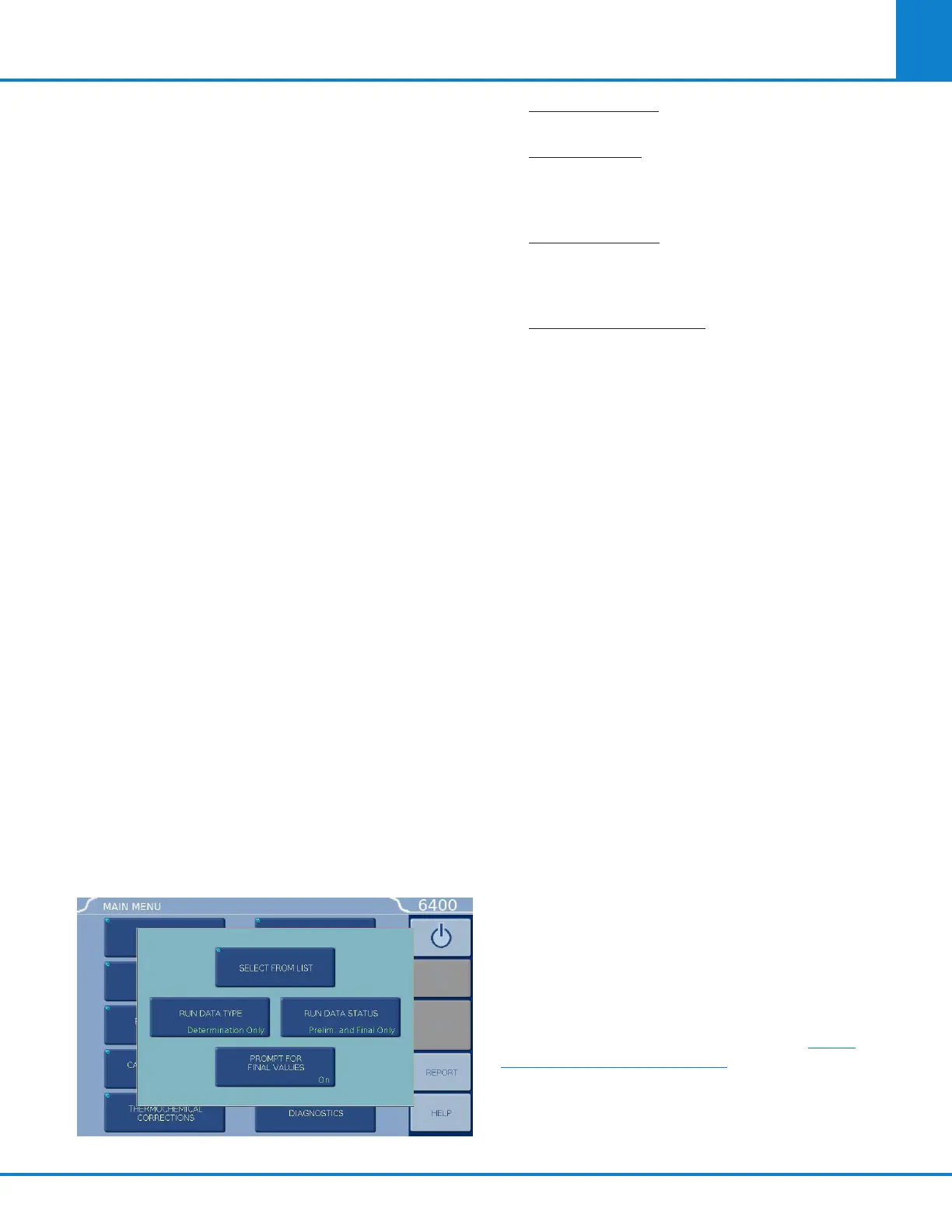 • Run Data Type. This key enables the operator to