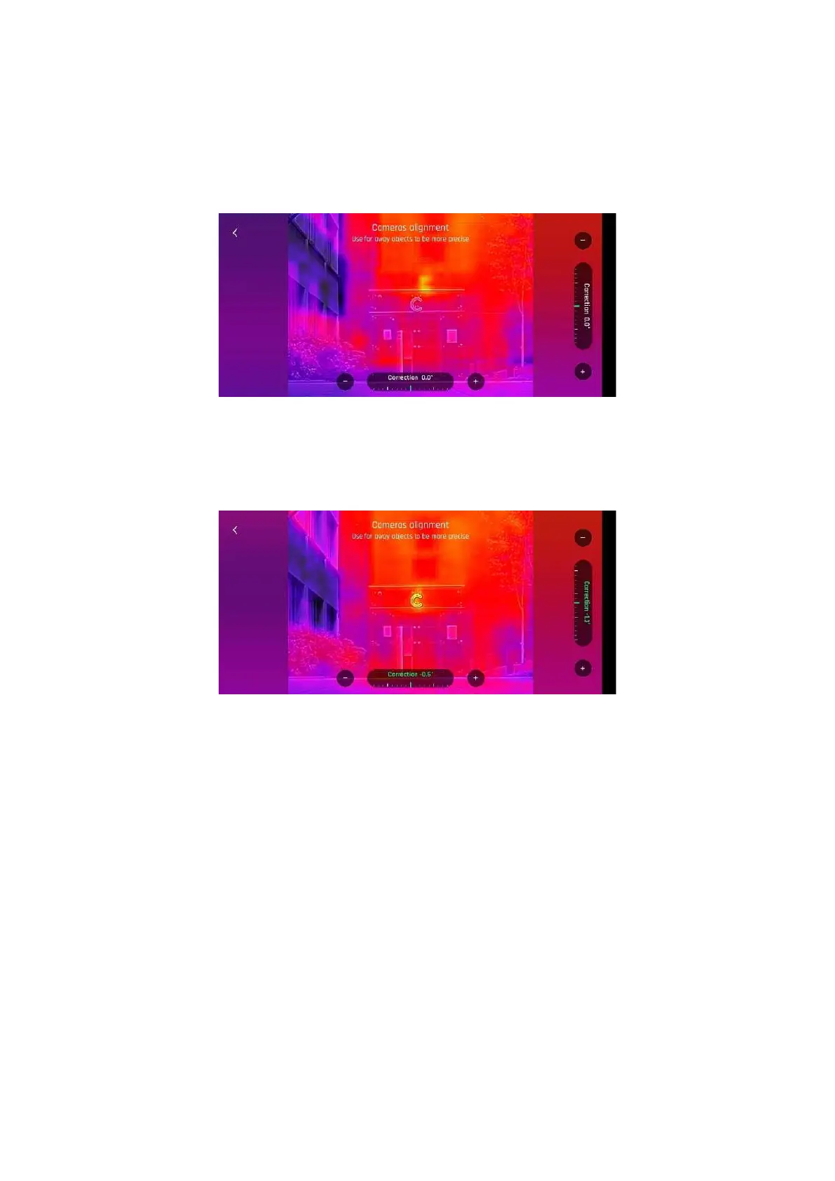 Tap + plus or - minus on each axis to align visible and thermal views.
