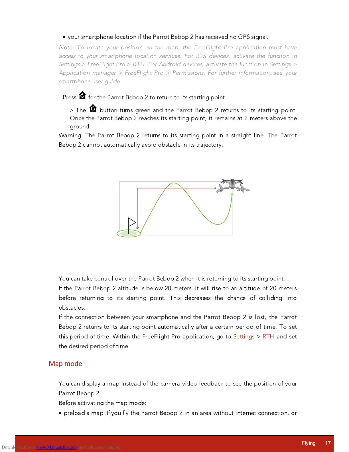ou can take control over the Parrot Bebop 2 when it is returning to its starting point.